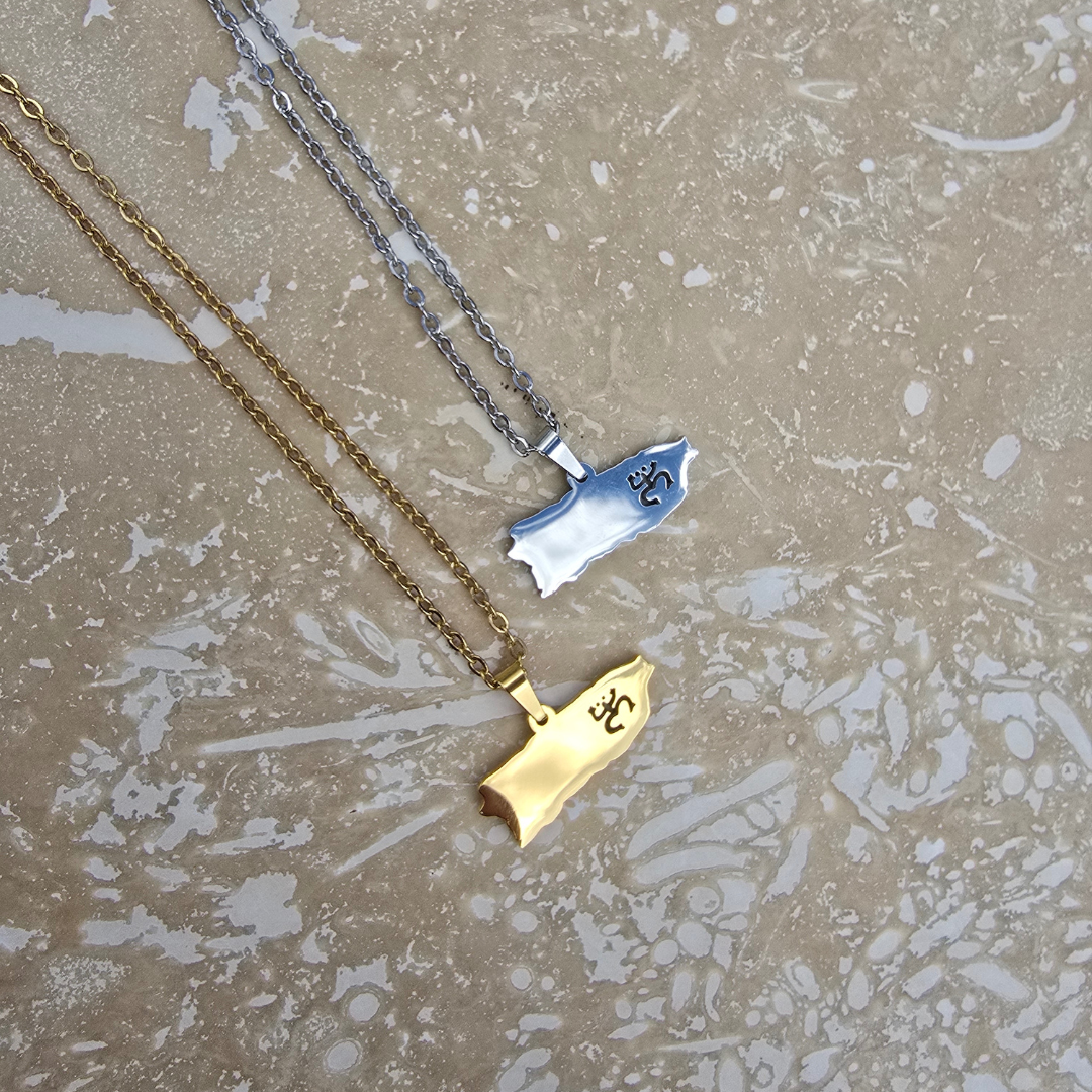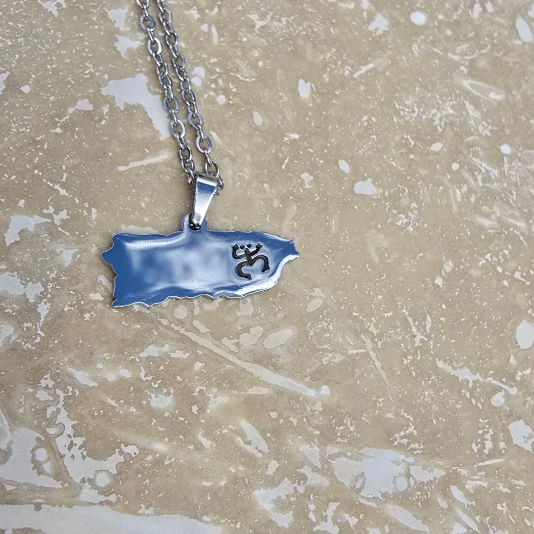 Embrace the spirit of Puerto Rico with the Isla Bonita Chain, featuring a stainless steel pendant in the shape of Puerto Rico engraved with the iconic Taíno coquí symbol. This piece is a tribute to the island's rich indigenous heritage and natural beauty. Available in both silver and gold finishes, this necklace is a stylish yet meaningful accessory that celebrates Puerto Rican culture. The sleek design and durable material make it perfect for everyday wear, while the symbolic pendant adds a touch of history and pride.